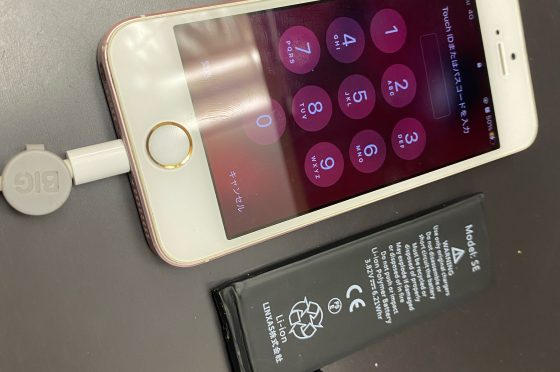 一晩充電しても起動しない初代iPhone SE、バッテリー交換修理でデータも全て復旧!突然充電持ちが悪くなったらご相談ください
