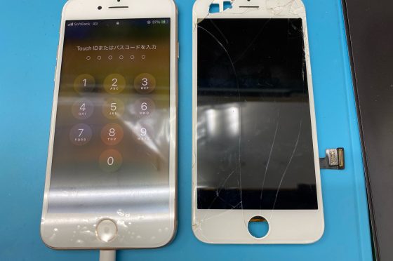 落下の衝撃で内部が見えるくらい破損したiPhone 8、飛び込みの受付でも即日対応