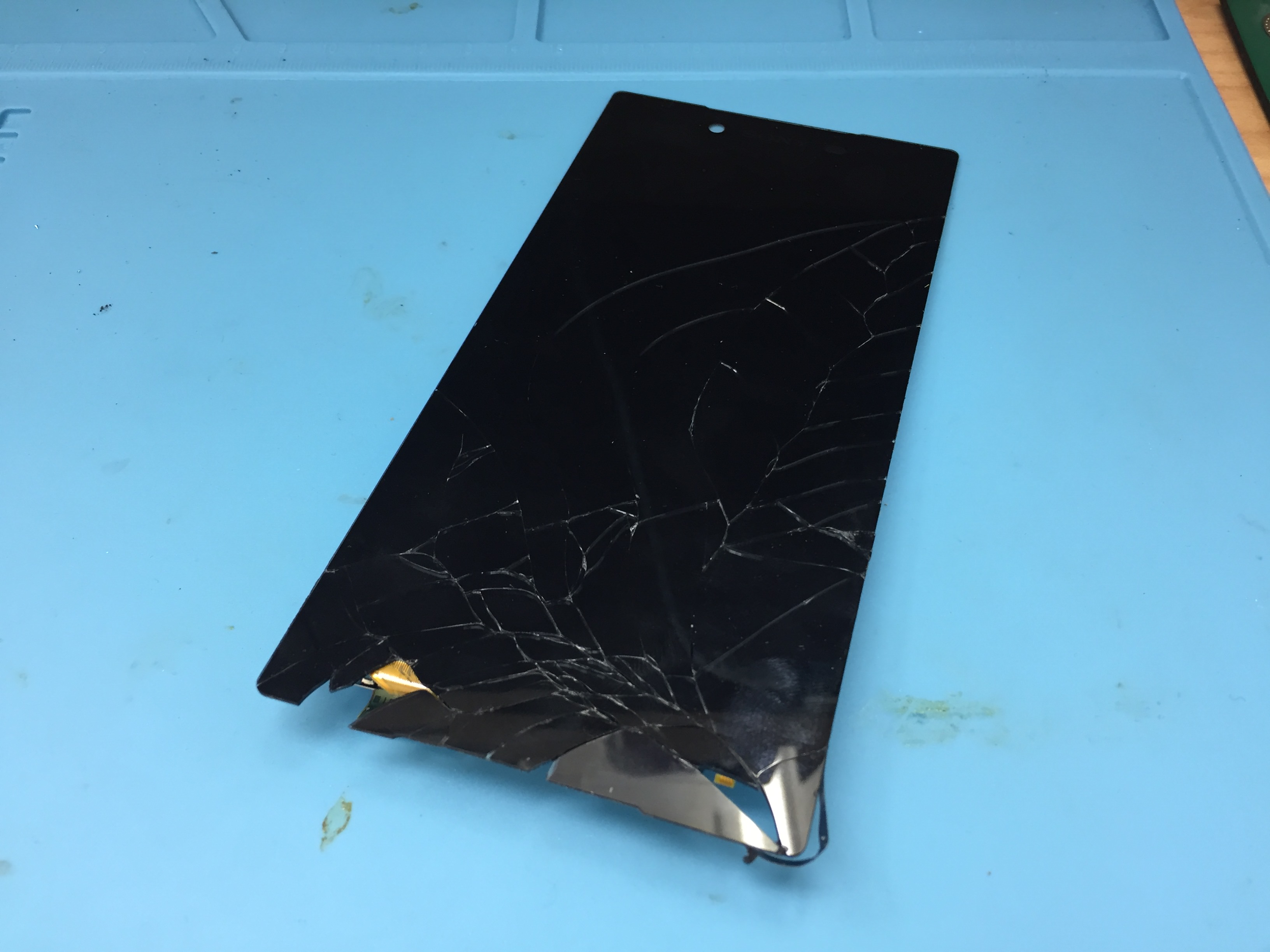 画面割れで表示が半分しか見れないXperia Z5(SO-01H)、画面まるごと交換で綺麗に修理できます