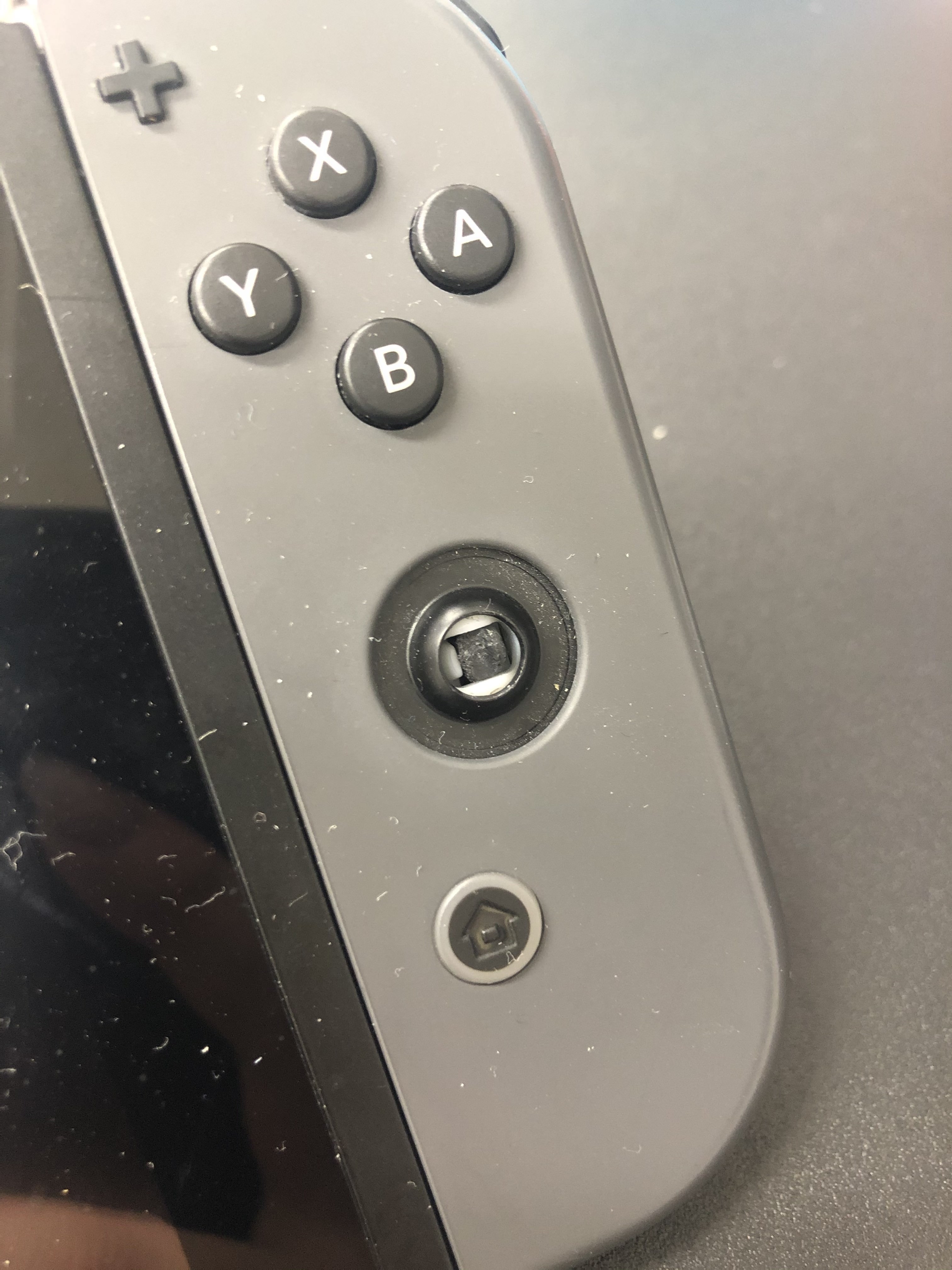 Switchを落としてジョイコンのスティックが折れました・・・というご相談をいただきました、そんなSwitchの状態がこちらです・・・
