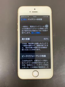 こちらが修理前のiPhoneSEのバッテリーの最大容量でございます。