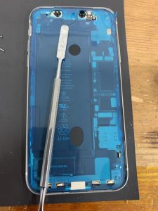 今回はこちらの液晶ガラスをiPhoneの純正品とほとんど変わらない当店の”標準ガラス”という商品で交換を行いました。