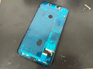 新しい画面にパーツを移植させ、本体に画面を付ける前に耐水テープを付けていきます。