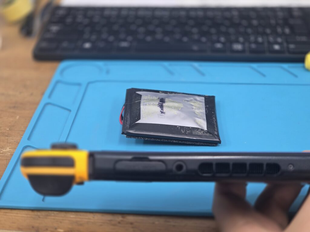 バッテリーが完全に膨張してしまい、本体にまで歪みが出てしまっていました…。