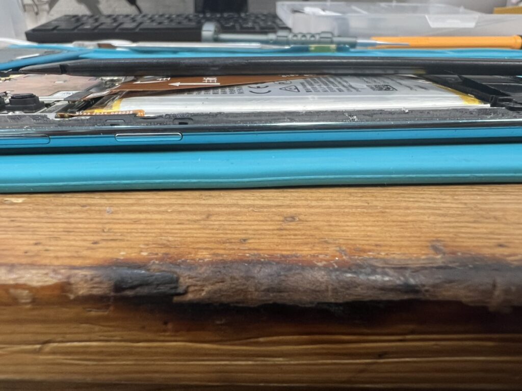 今回のお客様はバッテリー膨張してから一年ほどたってのを放置し悪化してしまったとのことでお持ち込みいただきました。
