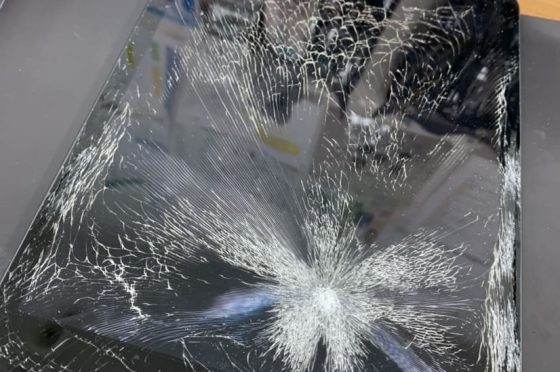 画面が蜘蛛の巣状に割れたiPad7のガラスと液晶交換修理「即日返し」