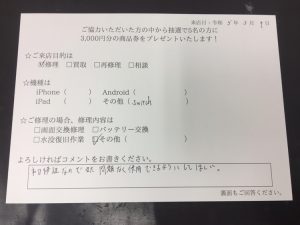スマホスピタル横浜駅前 NINTENDO Switchの冷却ファン交換を承りました!