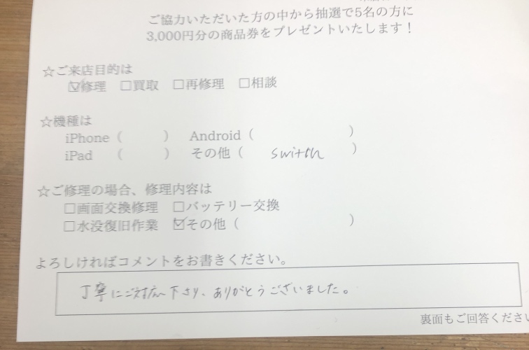 【任天堂Switch】お客様よりコメントいただきました