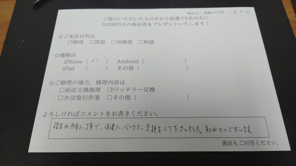 スマホスピタル横浜駅前 【iPhone6s】iPhone6sのバッテリー交換をご依頼いただいたお客様からコメントを頂きました!