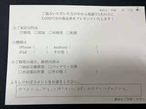 スマホスピタル横浜駅前 【ガラスコーティング】お客様からコメントを頂きました!