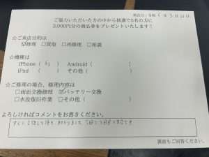 スマホスピタル横浜駅前 【iPhone5s】お客様からコメントを頂きました!