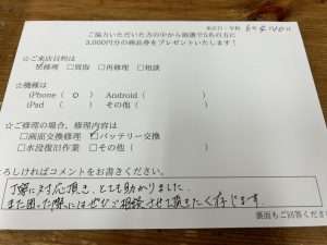 スマホスピタル横浜駅前 【iphone12miniバッテリー交換】お客様からコメント頂きました!