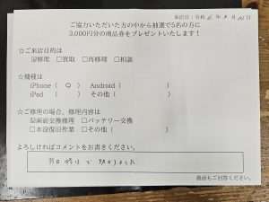 スマホスピタル横浜駅前 【iPhone8】お客様からコメントを頂きました!