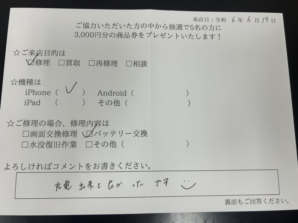 スマホスピタル横浜駅前 【iPhone8】お客様からコメントを頂きました!