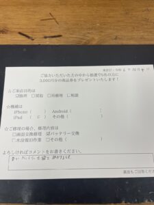 スマホスピタル横浜駅前 【iPad8】お客様よりコメントをいただきました!