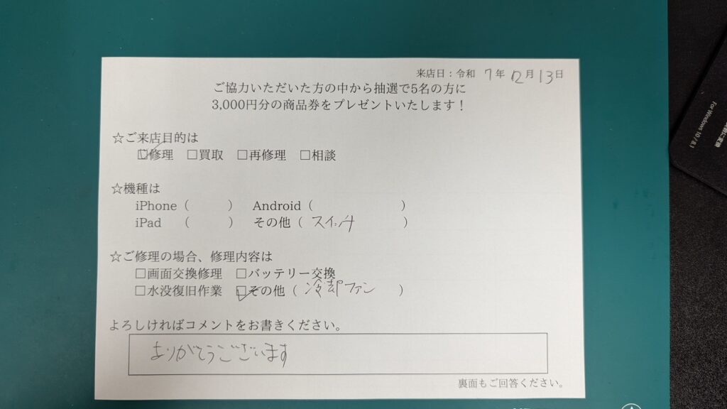 スマホスピタル横浜駅前 【任天堂 Switch】お客様よりコメントをいただきました!