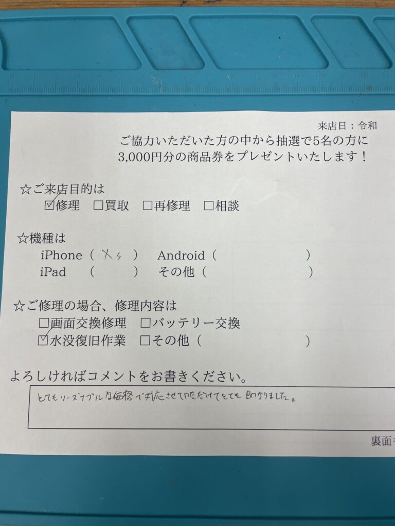 スマホスピタル横浜駅前 【iPhoneXS】お客様よりコメントを頂きました!