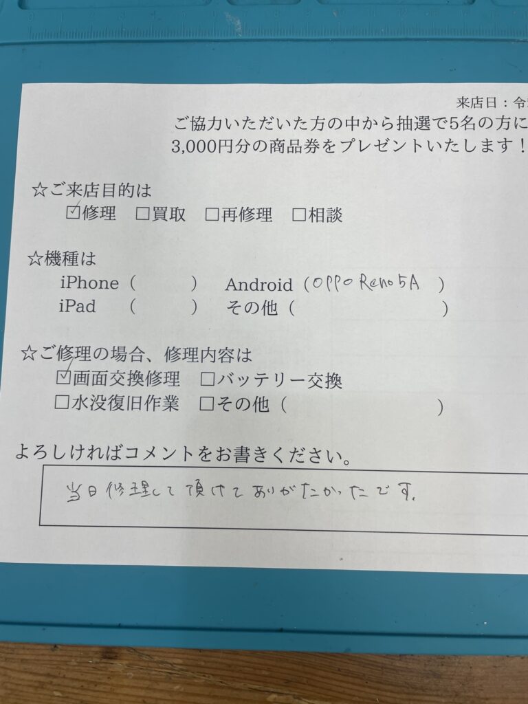 スマホスピタル横浜駅前 【OPPO Reno5A】お客様よりコメントを頂きました!