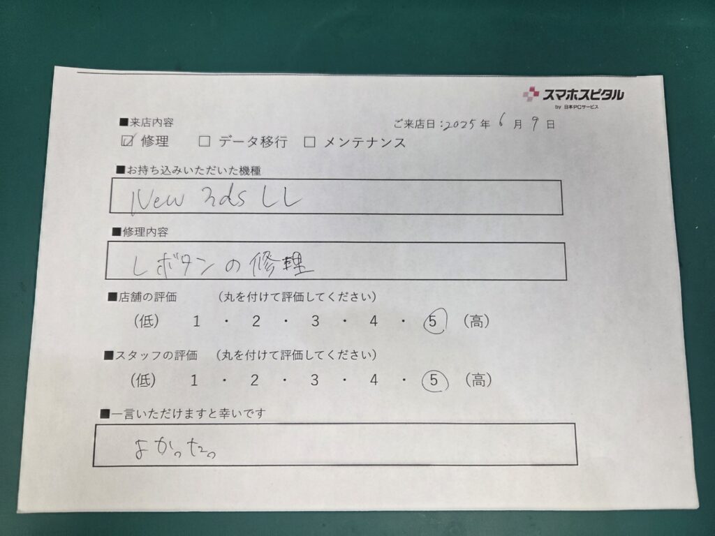 スマホスピタル横浜駅前 【New 3DS LL】お客様よりコメントを頂きました!