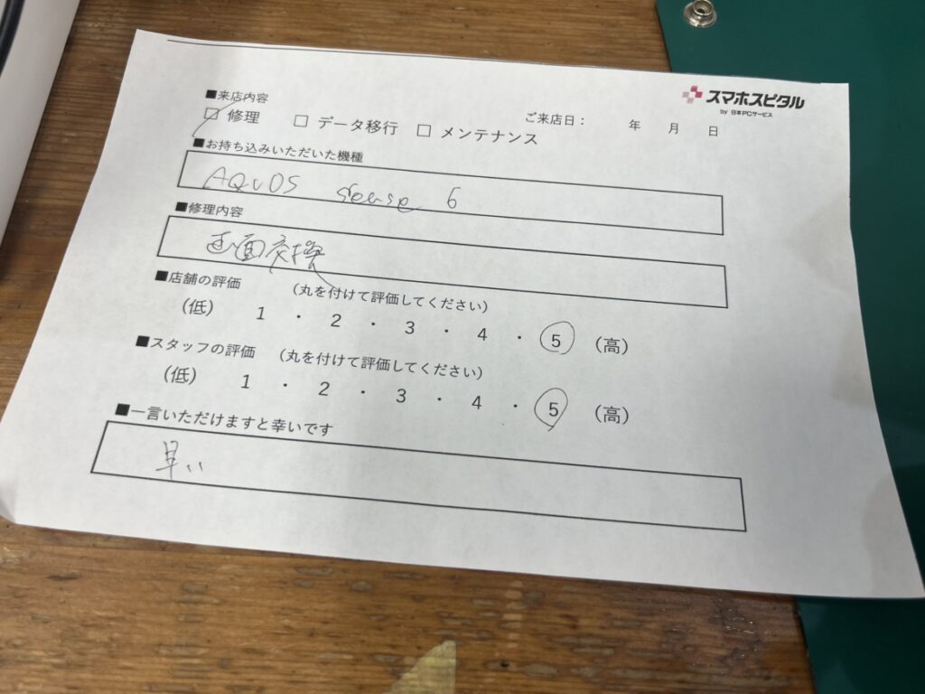 スマホスピタル横浜駅前 【AQUOSsense6】お客様よりコメントを頂きました!