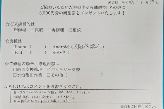 弊社の修理サービスをご利用いただいきましたお客様の声です。