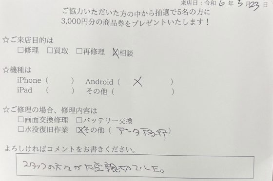 弊社の修理サービスをご利用いただいきましたお客様の声です。