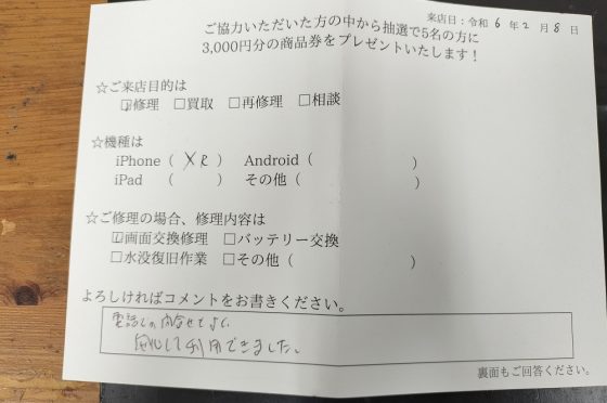 【iPhone XR】画面交換をご依頼いただいたお客様からコメントをいただきました!