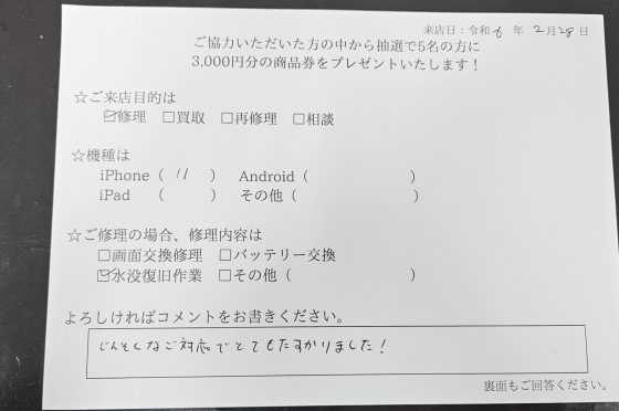 弊社の修理サービスをご利用いただいきましたお客様の声です。