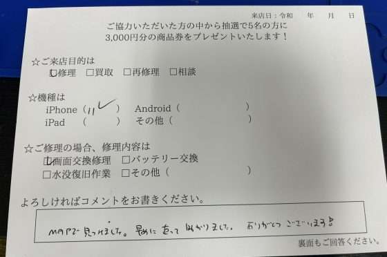 【iPhone11の画面割れ修理&バッテリー交換】お客様よりコメントを頂きました!