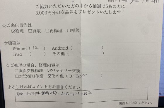 【iPhone12】お客様からコメントをいただきました!