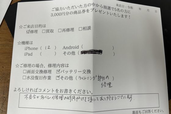 弊社の修理サービスをご利用いただいきましたお客様の声です。