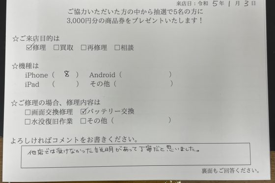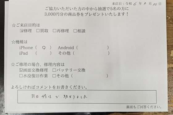 弊社の修理サービスをご利用いただいきましたお客様の声です。