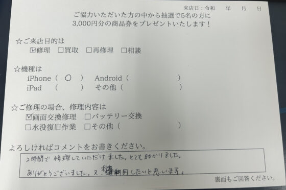 弊社の修理サービスをご利用いただいきましたお客様の声です。