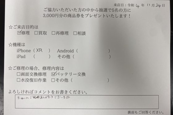 弊社の修理サービスをご利用いただいきましたお客様の声です。