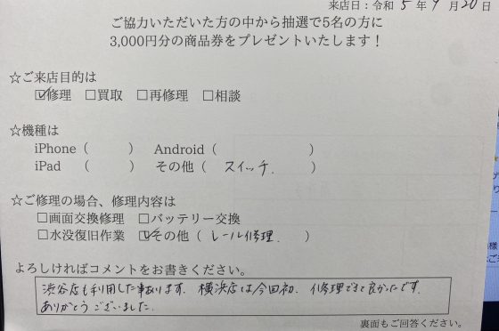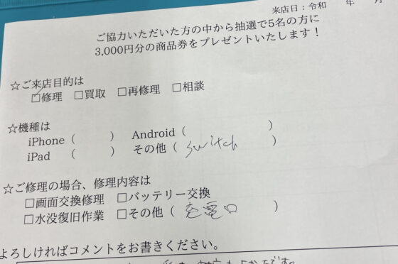 【任天堂 Switch】お客様よりコメントを頂きました!