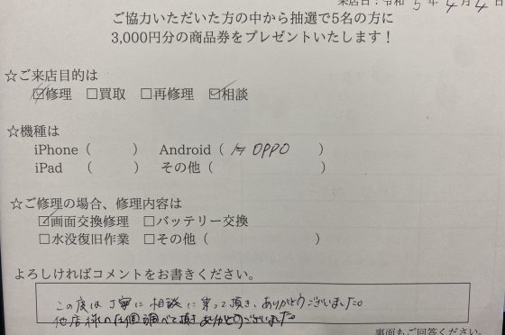弊社の修理サービスをご利用いただいきましたお客様の声です。