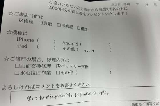 弊社の修理サービスをご利用いただいきましたお客様の声です。