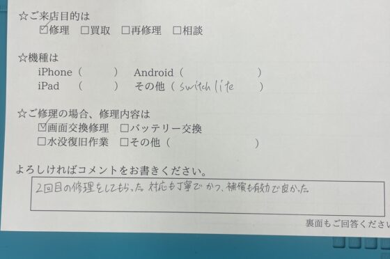 【Nintendo Switch Lite】お客様よりコメントを頂きました!