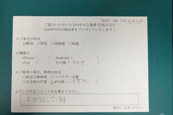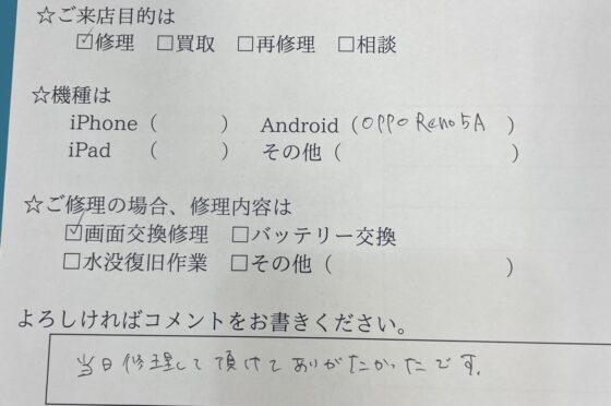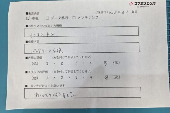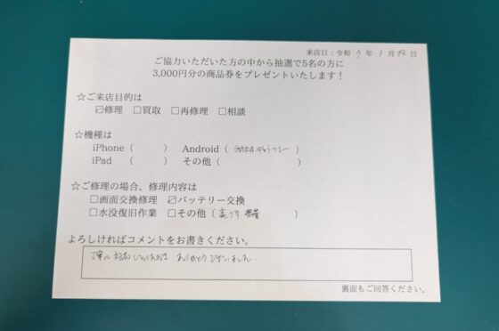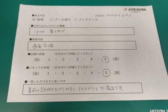弊社の修理サービスをご利用いただいきましたお客様の声です。