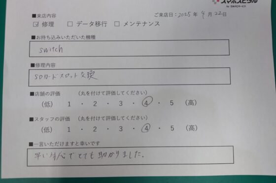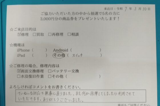 【任天堂 Switch】お客様よりコメントを頂きました!