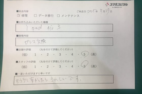 【iPad Air 3】お客様よりコメントを頂きました!