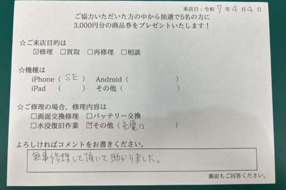 【iPhoneSE】お客様よりコメントを頂きました!