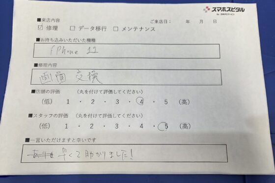 【iPhone11】画面割れ修理のお客様よりコメントを頂きました!