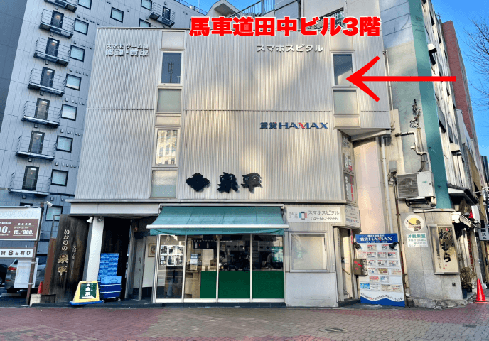 スマホスピタル横浜関内店はJR関内駅から徒歩3分圏内という好立地な場所店舗を構えております。 1階にはいなり寿司で有名な「泉平」さんが店舗を構えている馬車道田中ビルの3階に当店がございます。 横浜スタジアムや中華街からも近く、周辺にはデパートや娯楽施設も多いです。お買い物の間や通勤・通学の帰りなどに修理にお預けいただくことも可能です! 関内、桜木町周辺で即日iPhone修理・iPad修理・Androidの破損修理、Switch修理でお悩みの方は是非一度お問い合わせ、ご連絡お待ちしております。