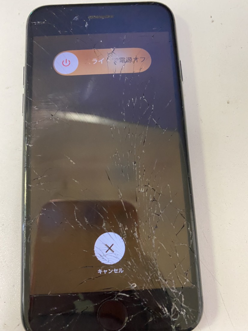 本日はこちらのiPhone7をお預かりしました! 修理内容は写真から伝わるように、ガラスが割れてしまっている状態でしたので画面交換修理です!