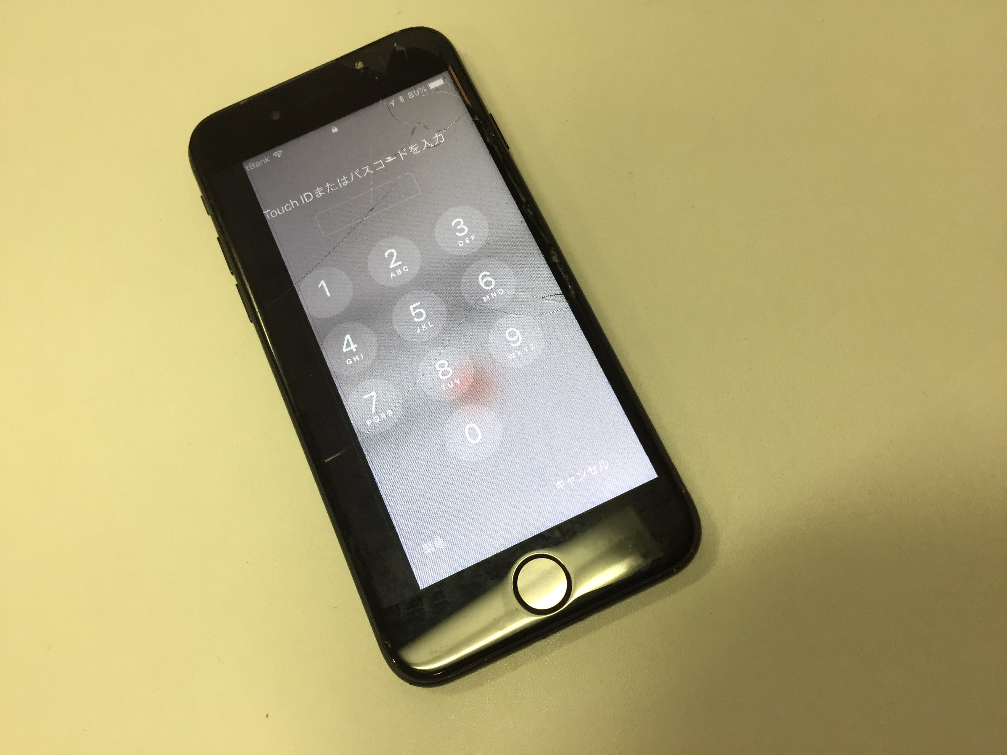 今回お持ち込みいただいたiPhone7は落としてしまいうすーく線が入っていたものの