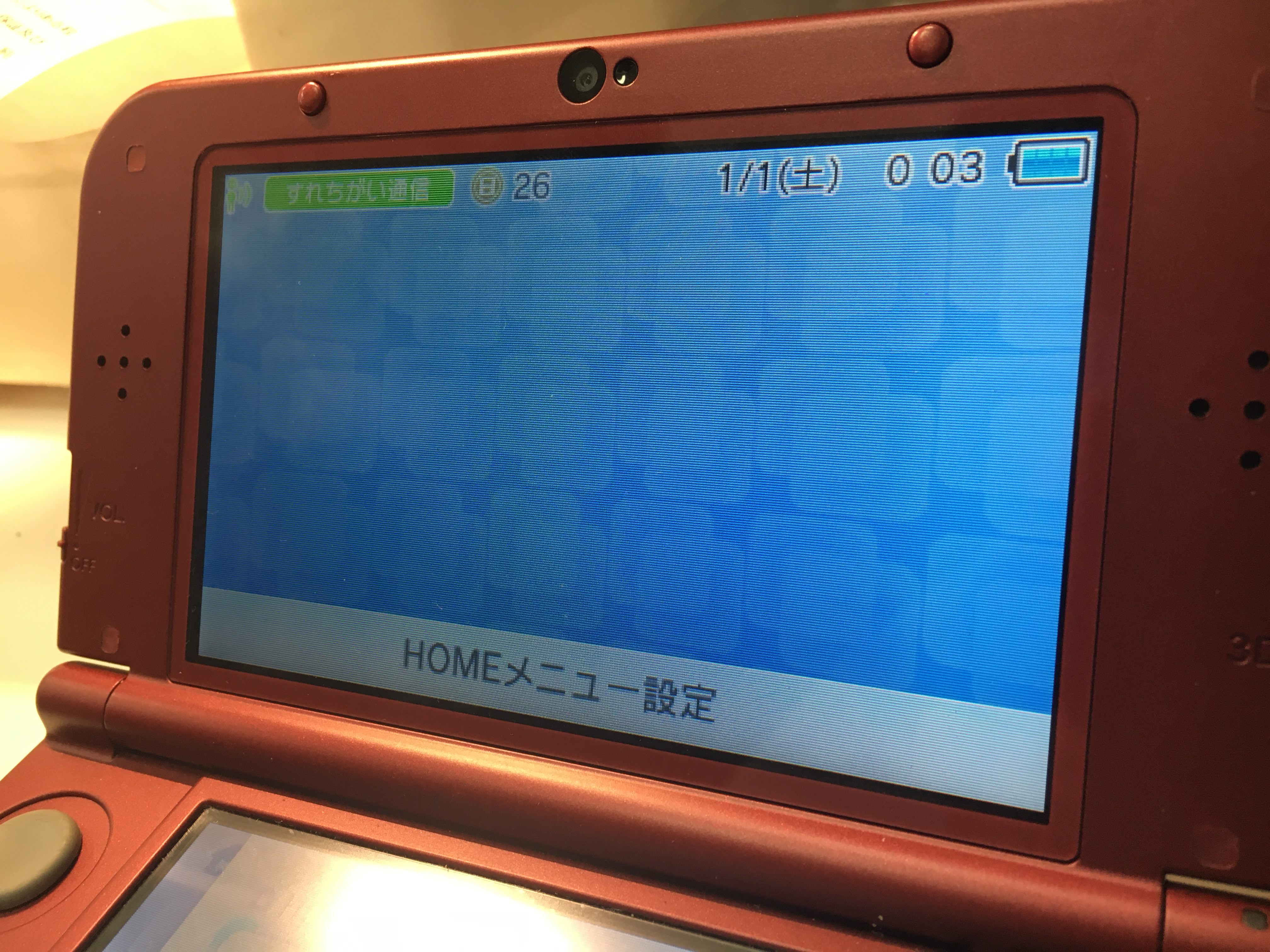 このように上画面の真ん中あたりに赤い線が入っていて、