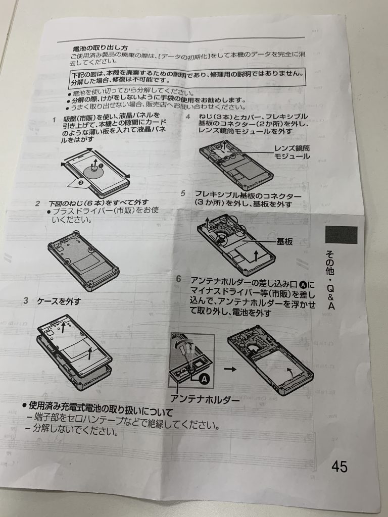 ご相談頂いた際にバッテリー破棄の手順が書かれた紙を見せていただきました。