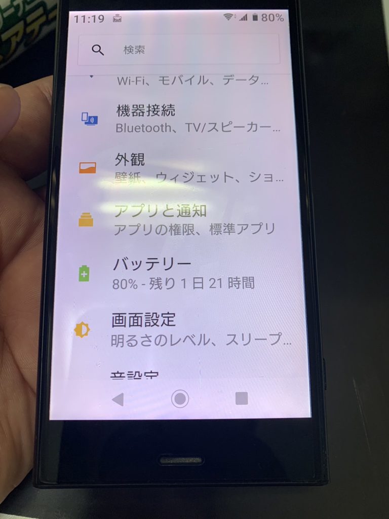 Xperiaは設定画面から「端末情報」→「機器の状態」→「電池性能表示」→「内臓電池の充電能力は〇〇です」の順番でバッテリーの状態を確認ができます。