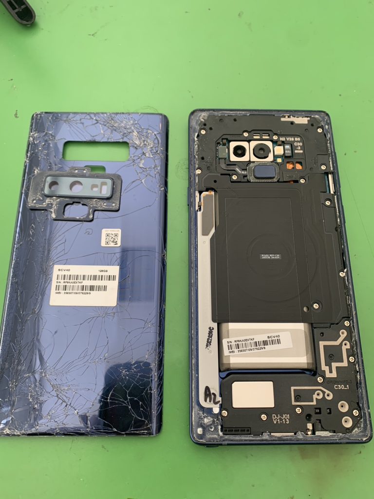 本日はGalaxy note9画面、背面パネル交換修理のご依頼をいただきました。
